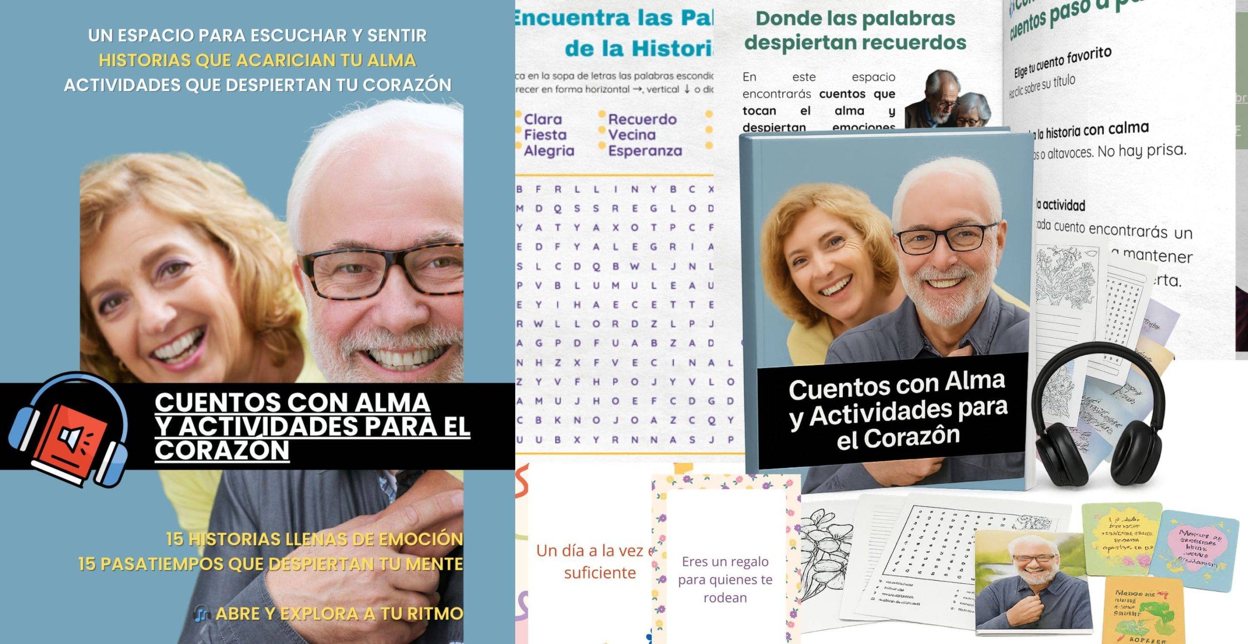 Cada cuento viene con una actividad sencilla, diseñada con cuidado para ayudar en la estimulación cognitiva suave.